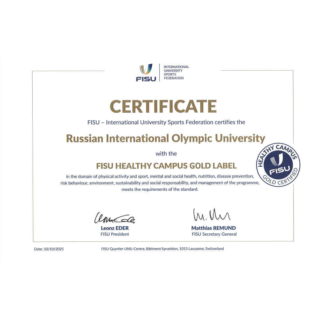 Официально золотые! РМОУ получил золотой сертификат FISU Healthy Campus. Награждение прошло 4 декабря на XII Конгрессе «РОССТУДСПОРТ». Сертификат вручала Альбина Рахматуллина, координатор проектов FISU Volunteer Leaders Academy и FISU Student Ambassadors. Процедура отбора была серьезной: аудиторы проверили все 7 критериев программы (более 70 пунктов), от условий окружающей среды до социальной ответственности. Наш университет набрал максимальные баллы в категории «Окружающая среда, устойчивое развитие и социальная ответственность». Что особенно отметили эксперты: • Фокус на профессиональных спортсменах ― мы помогаем им развивать карьеру после спорта. • Экозона у моря ― идеальное место для учебы и отдыха. • Высокие требования к преподавателям и постоянный мониторинг мировых трендов в спорте и образовании. • Прочные партнерские связи с федерациями и спортивными организациями России. FISU Healthy Campus ― это глобальная инициатива. В ней участвуют более 100 университетов из Австралии,