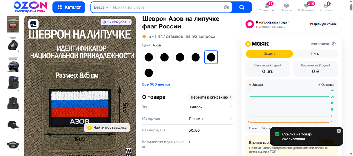 Продажа шевронов "Азов" на Ozon: законно ли это и какие риски для продавца?