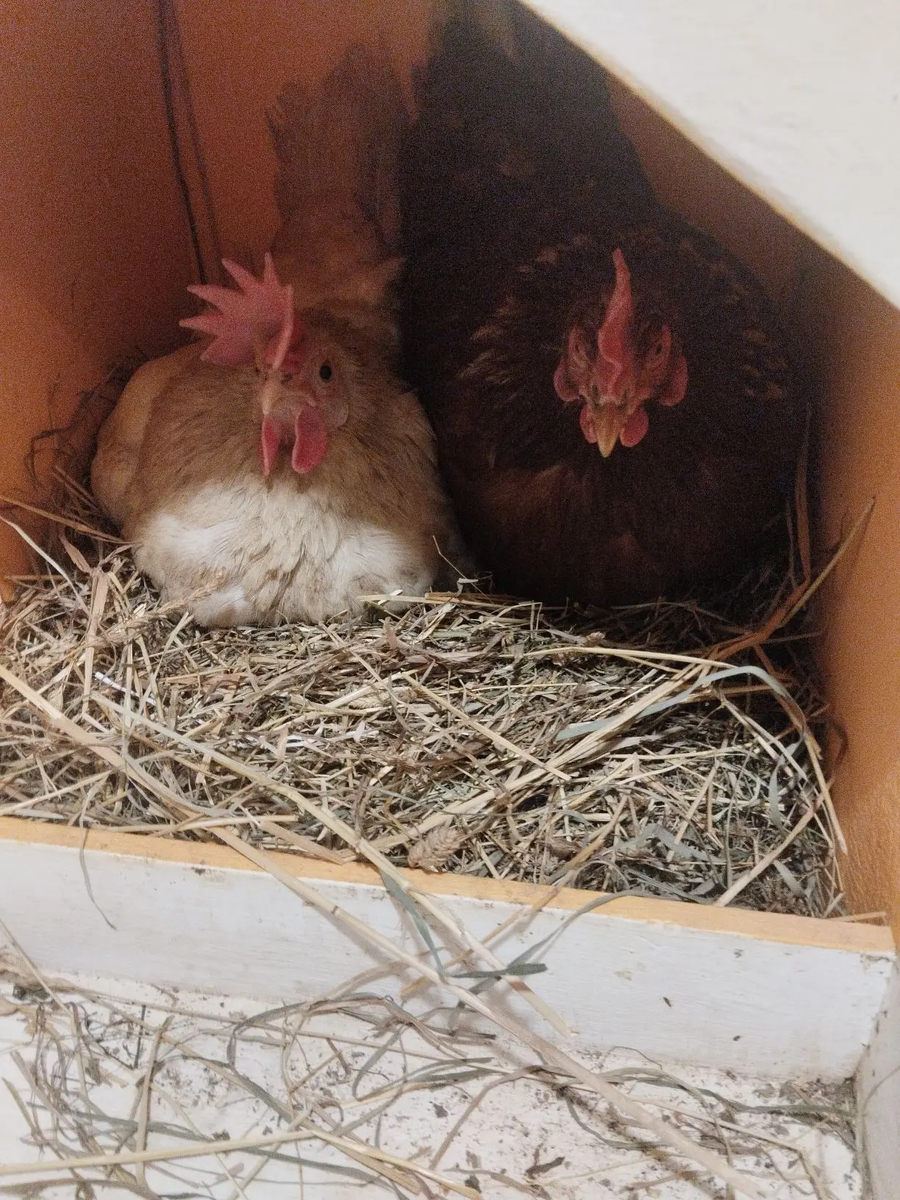 Почему нужно подвинуть,залесть,создать неудобство ближнему своему непонятно.Но наверное это какое то насижанное гнездо.Потому что это больше никак не объяснить. У нас двадцать курочек и 14 гнезд, но все равно раз от разу случаются такие оказии. И яйца тоже несут по странной схеме, может быть в каждом гнезде по одному,а может в одном 7,в другом 8, а в остальных ничего. Слегка не убрано,но отображает количество гнезд в курятнике. На самом верху у нас сидит одна индивидуалка, которая не хочет спать вместе со всеми.Пришлось ей уступить. Это муж сделал кормушку для комбикорма.Курочки быстро освоили и теперь не нужно морочится с каждодневным насыпанием. Ну вот! Как то так...
