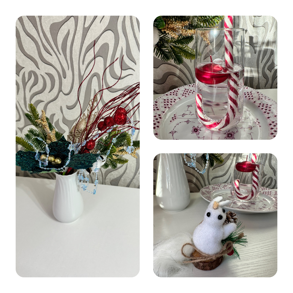 Декабрь наступил, снег выпал, нужно подумать как дом украсить к новогоднему празднику. А выбрать есть из чего, магазины предлагают широкий спектр товаров. Однако, для полноты картины мне пригодились и известные маркет-плейсы. Вообщем, я не ограничивалась покупкой где-то в одном конкретном магазине. Композиция За основу праздничной атмосферы моего интерьера легла советская эпоха и русские традиции. При этом я не украшала все жилище, а выделила одно место — комод у стены , но где все могут просмотреть новогоднюю композицию. В основе состоит еловый букет, из искусственных веток, в него включены яркие/блестящие детали и однотонные бусы. Находится букет в фарфоровой вазе белорусского завода Добруш. Ещё одной интересной деталью на мой взгляд стала многослойная композиция свечей, где приветствуется яркость. Фишкой в данном случае является всё, но все-таки свечи подбирались с учетом цветовой гаммы символа предстоящего нового года. Также мне понравилась идея положить кара