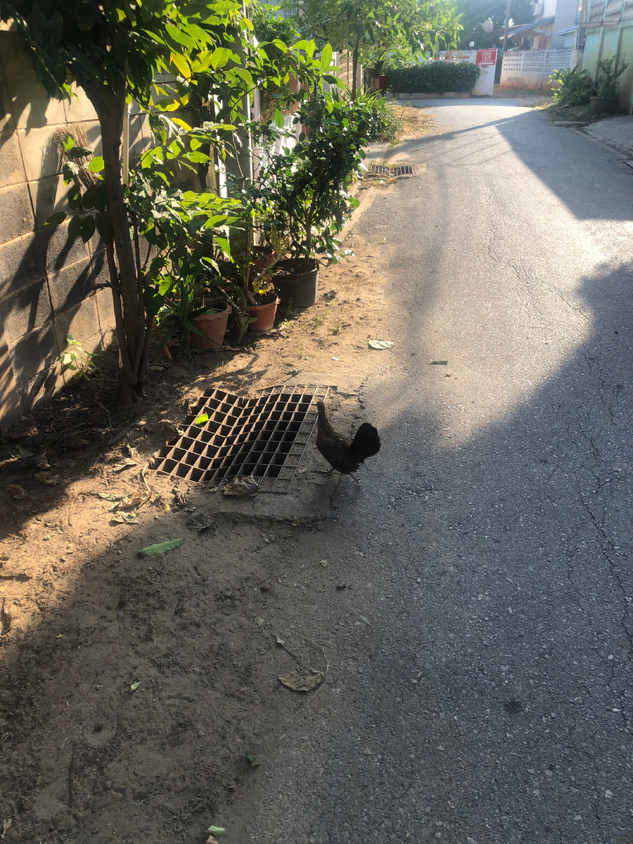 Курица бегала рядом, громко причитая. К тому времени как я пришел, Пилун и хозяин дома пытались как-то достать детей. От поверхности до дна около метра, ячейка решетки довольно мелкая, руку не просунуть.