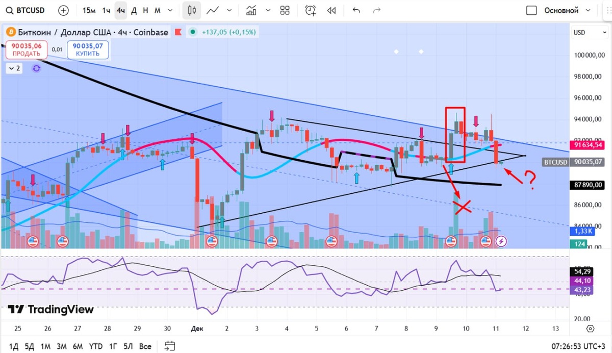 В ответ на пост Сценарий отменился. Думать, что "ТА не работает" не нужно ни в каком случае, потому что ТА - это прогноз, основанный на статистике. Например, по статистике 8 из 10 руководителей компаний - мужчины. Представьте, что вы не знаете СЕО и вас ведут с ним знакомить. А там - женщина, к чему вы были не готовы совсем. И вот этот момент не отменяет факта, что "по статистике 8 из 10 руководителей компаний - мужчины". Иначе говоря, если на рынке возникает пересмотр сценария, это укладывается в вероятность и это нормально. Как трейдер вы ожидаете, скажем, 70% рост и 30% "что-то" другое. Значит, реализовалась вот эта вероятность 30%, сработал риск и вы потеряли. В другой раз вы заработаете, потому что понимаете причины, почему открываете ордер. Ничего сложного, это просто правила игры. Цена все еще в медвежьем канале и пока я придерживаюсь текущего сценария на снижение #BTC