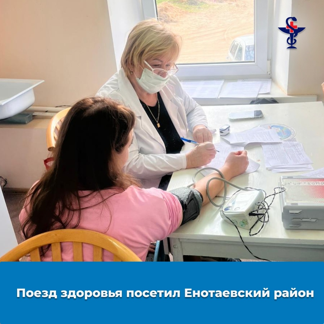Специальный «Поезд здоровья» проехал по отдалённым сёлам Астраханской области, чтобы жители могли пройти комплексное медицинское обследование. Акция проходила с 11 по 25 ноября и охватила девять населённых пунктов Енотаевского района. Выездная бригада врачей осмотрела жителей сёл Грачи, Никольское, Пришиб, Ветлянка, Фёдоровка, Восток, Ленино, Волжское и Замьяны. В ней работали специалисты сразу нескольких направлений: эндокринологи, пульмонологи, кардиологи, неврологи, гинекологи и врачи профилактической медицины. Всего медики провели более 1700 различных процедур. Жителям измеряли давление, делали кардиограммы (ЭКГ), проверяли функцию лёгких, определяли состав тела и насыщение крови кислородом. Для обследования также использовались современные аппараты — кардиовизор и газоанализатор. Кроме того, для пациентов с гипертонией и астмой были организованы специальные обучающие занятия. Организаторы благодарят администрацию Енотаевской районной больницы, а также персонал местных фельдшерских