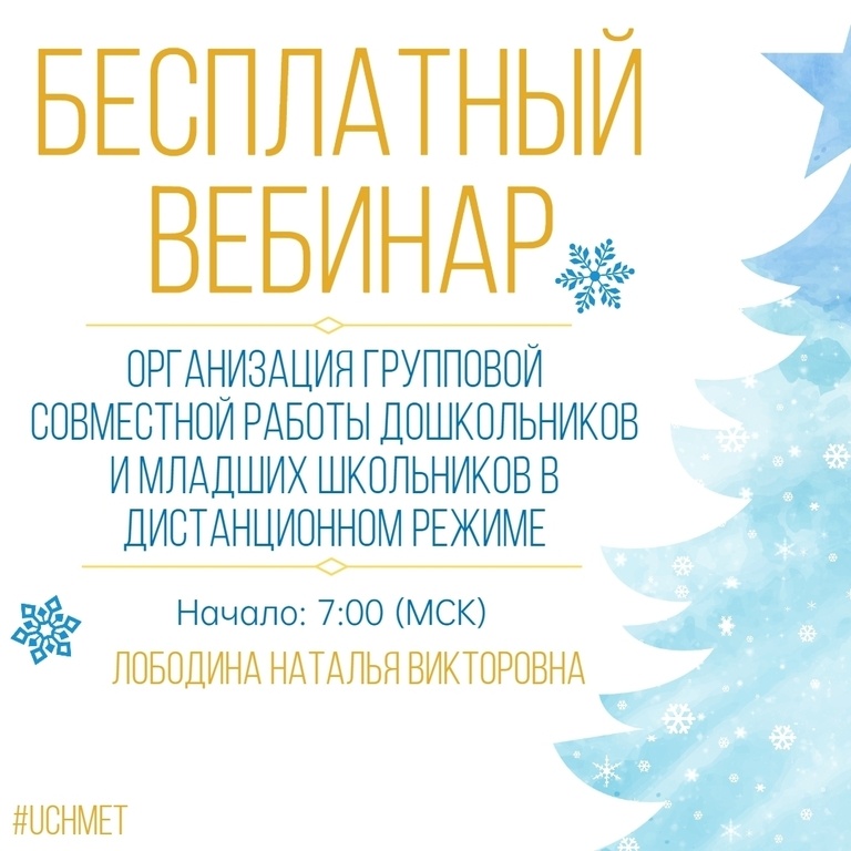 Вебинар «Организация групповой совместной работы дошкольников и младших школьников в дистанционном режиме» Дата проведения: 12.12.2025 Начало: 7:00 (МСК) https://www.uchmet.ru/events/item/4006912/ На вебинаре слушатели совместно с ведущим рассмотрят основное понятие «дистанционное обучение», а также познакомятся с примерами различных форм дистанционной работы педагога с детьми дошкольного и младшего школьного возраста. Содержательные вопросы вебинара: 1. Главные цели дистанционного обучения детей. 2. Особенности дистанционного обучения дошкольников и младших школьников. 3. Преимущества дистанционного обучения детей дошкольного и младшего школьного возраста. 4. Принципы построения дистанционного обучения дошкольников и младших школьников. 5. Как сделать дистанционное обучение эффективным? 6. Перечень образовательных ресурсов для дистанционного обучения. 7. Примеры различных форм дистанционной работы педагога с детьми дошкольного и младшего школьного возраста. Ведущий вебинара: Лобод