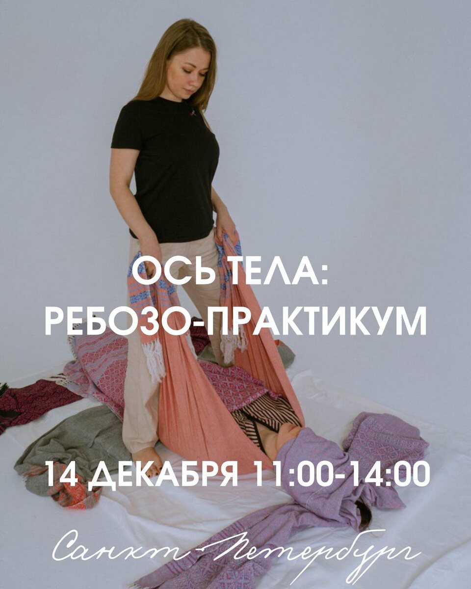 ❓Ребозо — что-то новенькое? В мексиканской культуре ребозо полотно имеет глубокую традицию: его используют для подготовки к родам, а уже после — как слинг для ношения малыша, используют в послеродовом периоде для глубокого телесного восстановления. 📌Но помимо широкого применения ребозо в пренатальном периоде, этот метод используют как технику глубокого телесного расслабления для всех желающих. Помочь собственной внутренней вертикали оставаться незыблемой, несмотря на внешние обстоятельства, можно на телесном практикуме «Ось тела: ребозо-практикум». На практикуме мы: ◾️поисследуем, как с помощью техник ребозо мы можем распознать глубинное напряжение в теле и как помочь своему телу освободиться от телесного сдерживания, ◾️разберем позвоночный столб как центральную ось тела человека, ◾️узнаем. как при длительном стрессе эта важная ось имеет особенность к сокращению и компрессии, тем самым уменьшая не только образ тела, но и само физическое тело в размерах. ➡️ во время практической