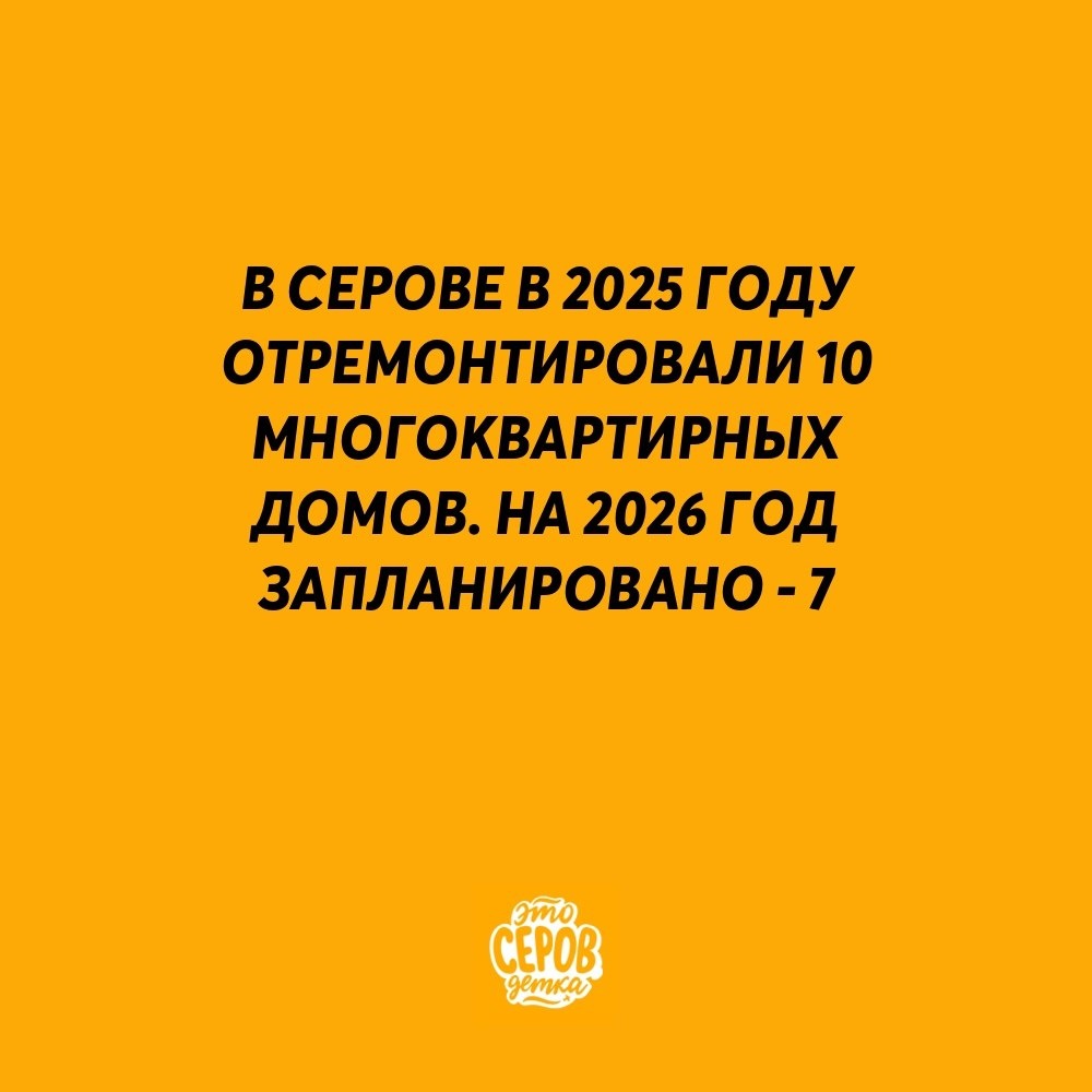 ⚡️ В Серовском округе в 2025 году отремонтировали 10 многоквартирных домов на 61 млн рублей. На 2026 год запланировано - 7. В рамках региональной программы капитального ремонта в Серовском округе в 2025 году проведены работы в 10 многоквартирных домах. Общий объем финансирования составил 61,2 млн рублей, которые были направлены на ремонт кровель, фасадов, отмосток и систем электроснабжения. Основные объекты ремонта: · Дома на улице Розы Люксембург (№2, 4, 6) — фасады и отмостки · Дома на улице Ленина (№134-б) и Центральной (№8, 12) — кровли · Дом на площади Металлургов — система электроснабжения Работы выполняли подрядчики ООО «Промстройсервис» и ООО «КровСтройСервис». На 2026 год запланирован капремонт в 7 домах на сумму 40,5 млн рублей, включая замену двух лифтов в доме №164 по улице Ленина.