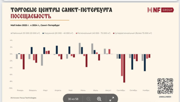 Доля продаж через интернет в общем объеме оборота розничной торговли Петербурга на середину 2025 года составила 23% (плюс 1,8 п.п.). Однако объем продаж через интернет перестал расти, с некоторой радостью констатировали на конференции по торговой и другой недвижимости консалтингового агентства NF Group. А также: будут ли в петербургских торговых центрах открываться новые термальные комплексы по примеру ТРК «Лето». Есть ли будущее у такой формы торговли, как торговые центры, которые давно «хоронят», но рынок сложнее, да и онлайн наконец перестал расти, прозвучало на конференции NF Group. На розничную торговлю очень влияет общий экономический и политический фон, настроение и даже психологическое здоровье населения, отметила эксперт, Евгения Хакбердиева, региональный директор департамента торговой недвижимости компании. За последние три года товарооборот в городе растет, но уже заметен тренд на снижение, оборот арендаторов тоже снижается. Вслед за федеральными чиновниками, заметила спик