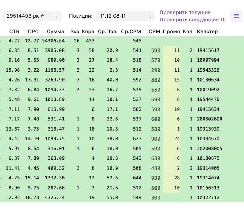 Позиции реклама/органика