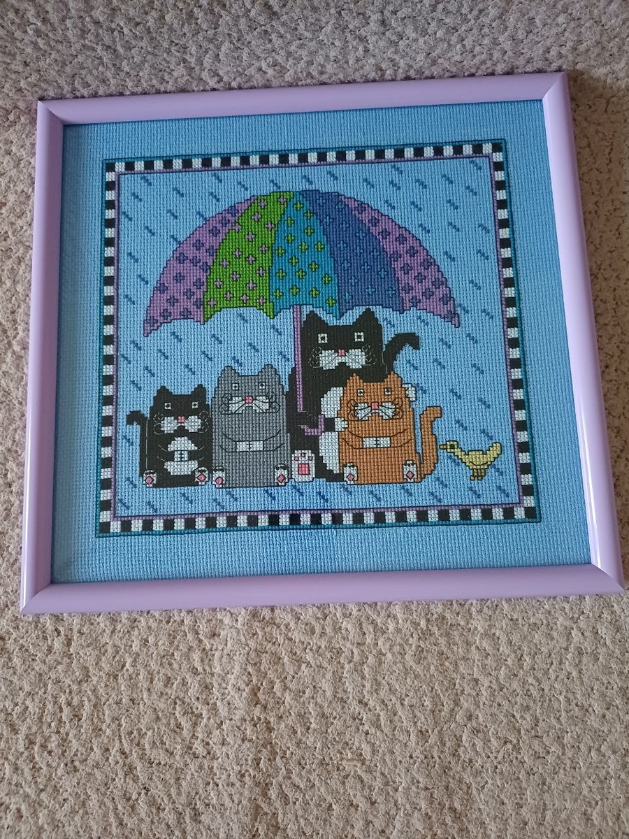 Привет мои дорогие! Меня зовут Наташа и я с огромным удовольствием занимаюсь вышивкой. Рада представить вашему вниманию свей дневник вышивальщицы. Сегодня я хочу вам рассказать о работе которую вышивала осенью 2025 года. Ко мне в руки попали остатки от набора: схема и ниточки американской фирмы Janlynn. Называется работа "Дождь, дождь уйди",дизайнера Дебби Дрейпер и художника Сьюзен Врисли. Подарила мне их моя вышивальная подруга Татьяна из города Тулы. Это было настолько давно, что Таня даже забыла, что когда то вышивала такой набор. А вышивала она его на подарок и самой вышивки в наличии у не осталось. Но зато она порадовалась за меня. Долго он лежал у меня в запасах, я просто о нем забывала. В 2025 году я впервые построила вышивальные планы и визуализировала их. Сделала я это для того что бы понимать, мне есть чем заниматься. И о чудо, работа готова. Начнем с начала. Старт работы состоялся 30 сентября 2025 года. Как я уже говорила выше - это были подаренные мне остатки от набора