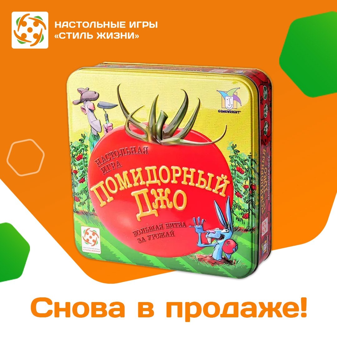 🍅 Настольная игра «Помидорный Джо» — весёлая битва за урожай! Выращивайте помидоры, защищайте грядки от вредителей и мешайте соперникам с помощью карточек. Копите 20 помидоров в корзине, чтобы вовремя отправить их на склад. Собрали? Молодцы! А если нет, начинайте заново! Побеждает игрок, собравший самый крупный урожай! ✅ Игра отлично подойдёт для: · Новичков (простые правила, быстрые партии) · Семьи (можно с детьми от 8 лет) · Подарка (яркая жестяная коробка) 🛍 Купить: Мосигра | Ozon | WB | Яндекс