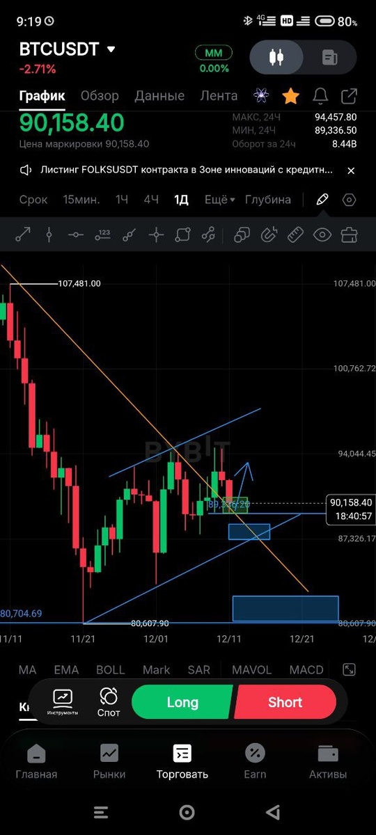 Ребят, самые значимые зоны отметил по битку. Момент первый, если удержимся в зелёной зоне. Она психологически важна для всех увидим рост по биткоину. Второй момент находимся на зоне сопротивления в восходящем канале. Если все наши ожидания не оправдаются ожидаем более глубокую коррекцию. Ещё раз напомню всем, что идет жесткая корреляция биткоина и золота. Биткоин растет, золото падает.