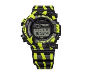 В Японии Casio официально анонсировала свои новые дайверские часы G-Shock Frogman GW-8200TPF-1JR. Часы выделяются уникальным дизайном с флуоресцентными зелёными полосами на чёрном фоне, вдохновлённым ядовитой лягушкой-дротиком из южноамериканских тропиков. Текстура её кожи воссоздана с помощью аэрозольного напыления на ремешке и безеле, а на задней крышке выгравирована лягушка с полосами, подчёркивающая тематическое оформление. Часы соответствуют стандарту водонепроницаемости ISO 200м. Корпус изготовлен из титана и ударопрочной смолы на биологической основе, а ремешок выполнен из биопластика, что снижает экологическое воздействие. Модель защищена от ударов, оснащена минеральным стеклом и задней крышкой с винтовым креплением. Размеры корпуса составляют 52 × 50,3 × 18 мм, вес – 84 грамма. G-Shock Frogman GW-8200TPF-1JR оснащены системой Tough Solar, работающей даже при слабом освещении, обеспечивая до 14 месяцев автономной работы и до 36 месяцев в режиме энергосбережения. Часы поддержива