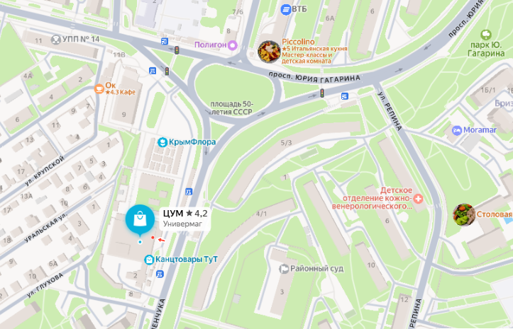 В этой статье сравним, каким было здание ЦУМа изначально и как оно выглядит сейчас. Статья написана автором канала на Дзен «Прогулки по Севастополю». Копирование или использование материалов без согласования с автором запрещены. Периодически просматриваю старые фотографии города, и иногда возникает мысль, что раньше действительно было лучше. Нет, я не из тех, кому вечно всё не так, не принимает ничего нового, современного. Но бывает так, что здания со временем очень сильно изменяют, и не всегда в лучшую сторону. Находится ЦУМ в начале улицы Вакуленчука, рядом есть площадь 50-летия СССР, проспект Гагарина: Вот так сейчас выглядит здание, в котором находится ЦУМ: 1. Чуть поближе: 2. Очень много различных вывесок: 3. А когда-то здание выглядело совсем иначе: 4. 5. Здание было построено в 1971 году по проекту архитекторов И. Е. Фиалко, К. В. Бутовой и инженера Н. И. Протасова. Да, оно не отличалось интересной архитектурой. Но не было этой пристройки с магазинами на первом этаже, не бы