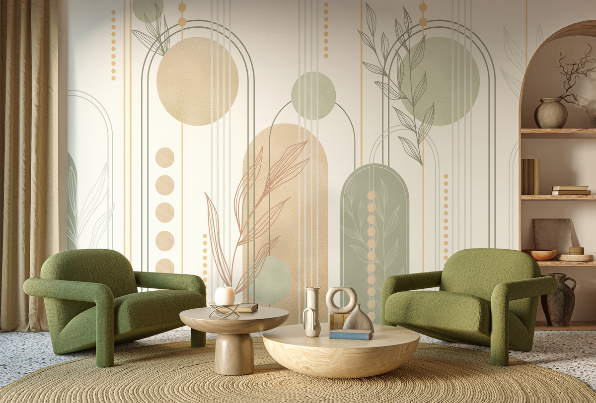 Минимализм: геометрические или абстрактные фрески с использованием монохромной палитры.