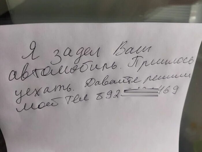 К нам на анализ поступила ситуация, с которой может столкнуться любой водитель: обнаружение под дворником автомобиля записки с извинениями и контактным телефоном от человека, предположительно задевшего ваш транспорт на парковке. В тексте записки, как правило, говорится о спешке и обещании решить вопрос позднее.