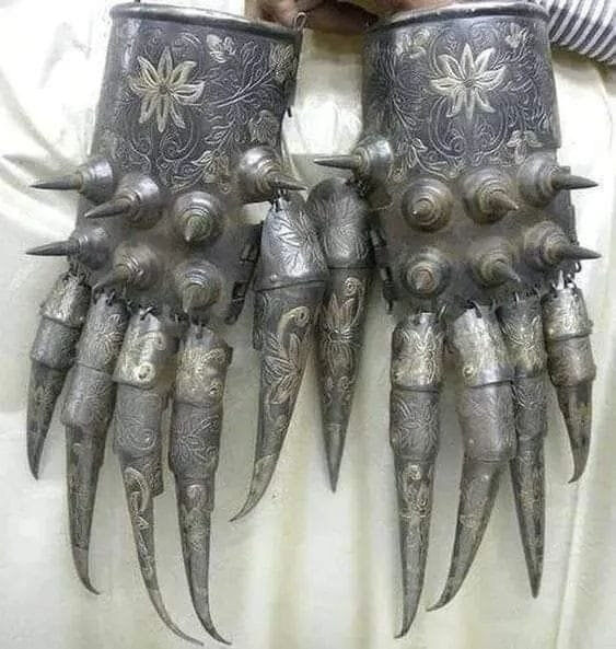 Что объединяет персидских воинов XVI века и современные модные бренды? В начале XVI века воины династии Сефевидов носили необычные металлические перчатки с когтевыми накладками. Их назначение до сих пор не установлено точно. Большинство исследователей сходится в одном: такие перчатки были нужны не столько для удара, сколько для того, чтобы производить впечатление. В бою образ значит не меньше, чем оружие. Видишь противника в «когтях» — и уже воспринимаешь его как более опасного, чем он есть на самом деле. Это простая, но работающая психология. Похожий принцип использовали японские ниндзя со своими сюко. Да, ими можно было карабкаться по стенам и драться, но главное — они пугали. Когда ниндзя появлялся из темноты с металлическими когтями, это само по себе выбивало противника из равновесия. Эффект был настолько сильным, что именно сюко стали основой легенд о «ниндзя-оборотнях». Как эти исторические детали перекликаются с современной модой? Современные. дизайнеры работают с визуаль