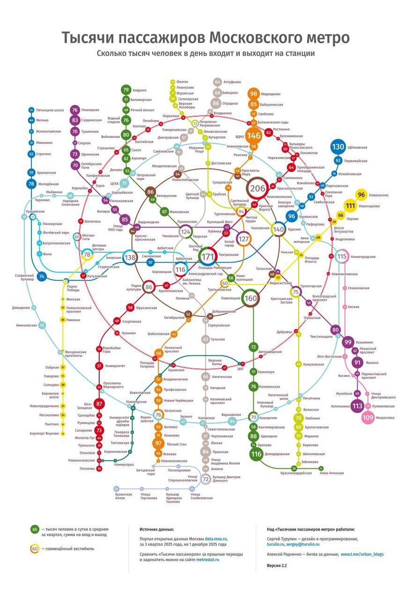 Статистика пассажиропотока в метро 🚇Ⓜ🚄 📑➡️По состоянию на декабрь 2025 года самая загруженная станция в СВАО, как и прежде, "ВДНХ". Ею пользуются 146 тыс. человек в сутки (вкл. вход и выход). 📝➡️На втором месте "Медведково" - 98 тыс. человек. На третьем - "Отрадное" (86 тыс. человек). Следом - "Бабушкинская" (85 тыс. человек), "Бибирево" (68 тыс. человек) и "Алтуфьево" (64 тыс. человек). 🚝➡️"Алексеевская" с 58 тыс. человек, расположилась в середине рейтинга. 🔊А для Вас какая самая загруженная станция метро?