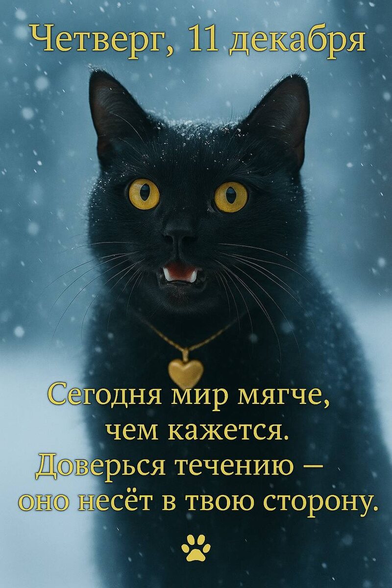 ⭐ Астропогода на четверг, 11 декабря День приносит ясность, скорость и лёгкие совпадения. Это один из тех декабрьских дней, когда всё складывается проще, чем ожидалось. Интуиция работает тонко, идеи приходят быстро, люди настроены мягче, чем обычно. Хорошо идут: ✨ важные разговоры, ✨ творческие задачи, ✨ финальные штрихи перед большими решениями. Сложнее идут: ⚠️ попытки контролировать всё сразу — день сам выведет, куда надо. 🐱 АСТРОБУБА • ЧЕТВЕРГ, 11 ДЕКАБРЯ ♈ Овен 💼 День сам подкинет решения — доверься процессу. 💞 Тёплый интерес с чьей-то стороны станет очевиднее. ☕ Добавь телу движения. ♉ Телец 💼 Маленький шаг сегодня = большой результат позже. 💞 Нежность важнее слов. ☕ Пей воду — голова будет яснее. ♊ Близнецы 💼 Идеи летят потоком — фиксируй всё. 💞 Флирт возможен внезапно и красиво. ☕ Перезагрузи мозг короткой прогулкой. ♋ Рак 💼 Доверяй опыту — ты всё понимаешь точнее, чем думаешь. 💞 Захочется заботы — дай её себе и близким. ☕ Береги сон. ♌ Лев 💼 Легко убежда