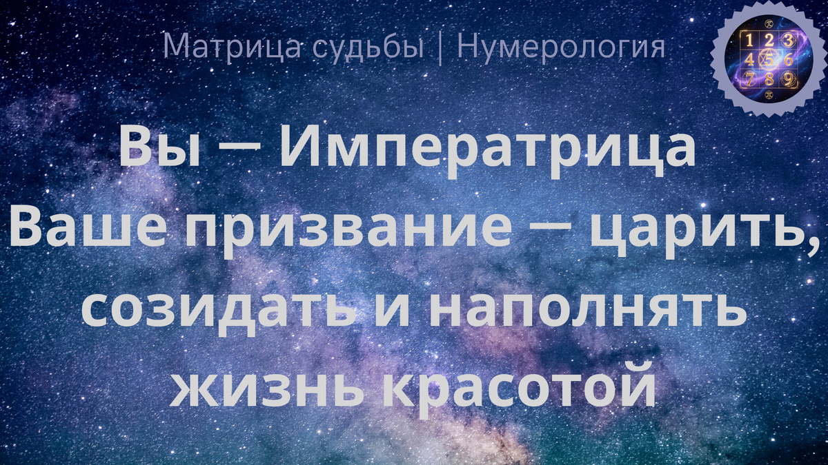 Пока Маг творит идеи, а Жрица хранит тайны, вы являетесь воплощением самой жизни в её самом щедром проявлении. Энергия №3 — это Императрица, Хозяйка, Мать Мира. Это самый женственный, плодородный и изобильный аркан. Вы пришли не просто жить, а взращивать, украшать и наполнять всё вокруг собой. Ваша стихия — сама Земля, дарующая плоды. Ваша суть: благодатная почва и мудрое правление Ваша энергия — про созидание в самом широком смысле. Это не только рождение детей (хотя для многих это ключевой путь), но и создание бизнеса, дома-крепости, произведений искусства, уютного пространства, где всем хорошо. Вы — хозяйка своей жизни. Ваша задача — личным примером показать, как можно жить в роскоши, статусе и гармонии, не идя по головам, а с позиции мудрости, заботы и рассудительности. Вы соединяете духовное и материальное. Для вас важно и красивое платье, и душевный разговор; и статусный автомобиль, и цветущий сад. Ваш вызов — проработать тему женственности, материнства и рода. Обиды на мать или