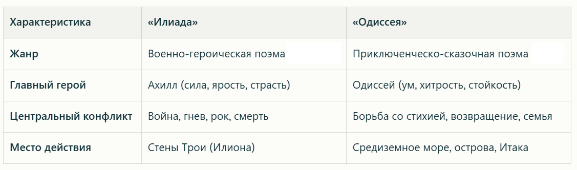 Поэмы Гомера «Илиада» и «Одиссея» — это величайшие памятники античной литературы, которые рассказывают о событиях, связанных с Троянской войной и её последствиями. Однако каждая из поэм имеет свой уникальный фокус и темы. Илиада Поэма посвящена событиям десятого года Троянской войны. Важно понимать, что Гомер не описывает всю войну целиком, а сосредотачивается на конкретном эпизоде. Главная тема: Гнев Ахиллеса и его губительные последствия. Сюжет строится вокруг конфликта величайшего греческого героя Ахилла с предводителем войска Агамемноном, из-за чего Ахилл отказывается сражаться. Ключевые события: Поединки героев (Ахилл против Гектора), вмешательство олимпийских богов в битвы людей, трагедия смерти (гибель Патрокла и Гектора). Идея: Гомер показывает ужас войны, но одновременно воспевает воинскую доблесть, честь и человечность, которая проявляется даже к врагу (например, сцена, где Ахилл отдает тело Гектора его отцу Приаму). Одиссея Эта поэма рассказывает о долгом и трудном возв