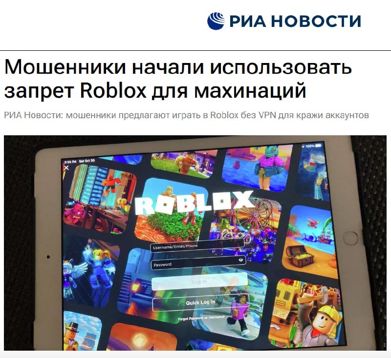 Роскомнадзор - это новая Лариса Долина! Вчера тренер в спортзале сказал, что у его дочери по поводу идиотской инициативы неустановленного круга людей только один вопрос - кто вернёт ей её личные, сэкономленные на обедах и подарках деньги, хранящиеся в играх Roblox. Кто. Вернёт. Детям. Деньги. ??? Роскомнадзор - похититель детства! Компашка расхитителей как минимум карманных денег, как максимум - народного имущества. И сегодняшняя новость от вполне себе статусной государственной новостной конторы РИА - добавляет вопросов. Мошенники предлагают поиграть на Roblox через фишинговый сайт, а потом угоняют аккаунты пользователей, рассказали аналитики. Сайт предлагает "авторизоваться", чтобы подключиться к прокси-серверам - так аферисты получают данные для входа. Кто в этом виноват? Стоит напомнить, что РКН блокирует сайты в интересах 2 концернов: Газпром-Медиа и корпорации VK (ей владеет тот же Газпром-Медиа) Выходец из РКН неспроста управляет Газпром-Медиа. Оператор распада! ЕЖу пон
