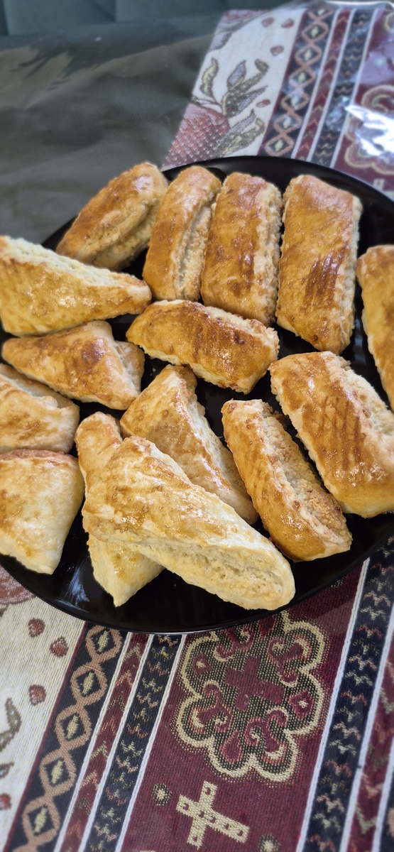 Традиционная армянская выпечка Но сегодня делаем не как традиционный ,а быстрый вариант 😉 Слоёное тесто бездрожжевное - 1уп (500г.) Сливочное масло -100г. Сахар -100г. Ванилин -1 уп. Мука -150г. Сливочное масло ,сахар ,ванилин и муку соединяем Раскатываем тесто в тонкий пласт ,сверху ложим полученную массу ,и крутим его в рулет. Нарезать на порционные кусочки ,намазывать яйцом и в духовку ,200° на минут 15-20. Завариваем вкусный чай или кофе ,и приятного аппетита