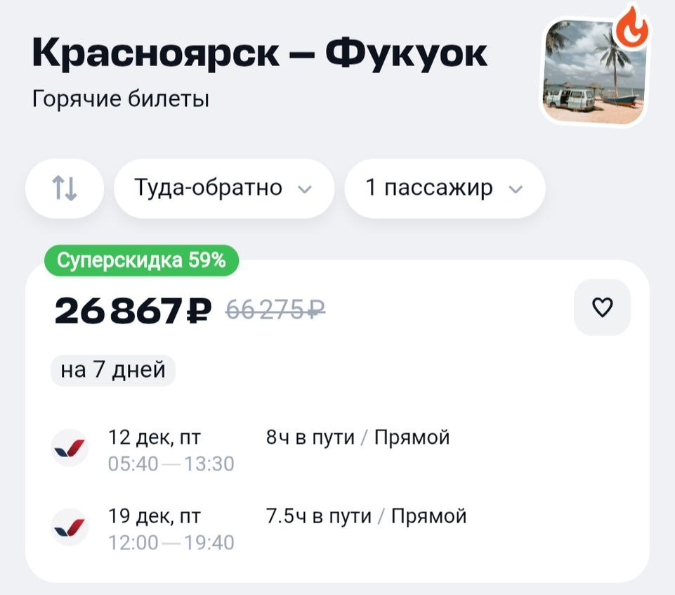 Машина времени существует: Сейчас 11 декабря 2011 года. Иначе никак не объяснить эти цены. Ах да, в 2011 не было рейсов на Фукуок. Машина времени с багом, да. ) https://aviasales.tpm.lv/UcPQZE1R #PQC @KJA