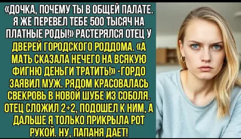 — Я же перевел вам пятьсот тысяч, — продолжил отец, глядя прямо в глаза мужу дочери. Он говорил негромко, но каждое слово падало, как камень. — Пятьсот тысяч рублей. На отдельную платную палату. На хорошего врача по контракту. На то, чтобы моя дочь лежала не здесь, в коридоре проходного двора, а в нормальных человеческих условиях.