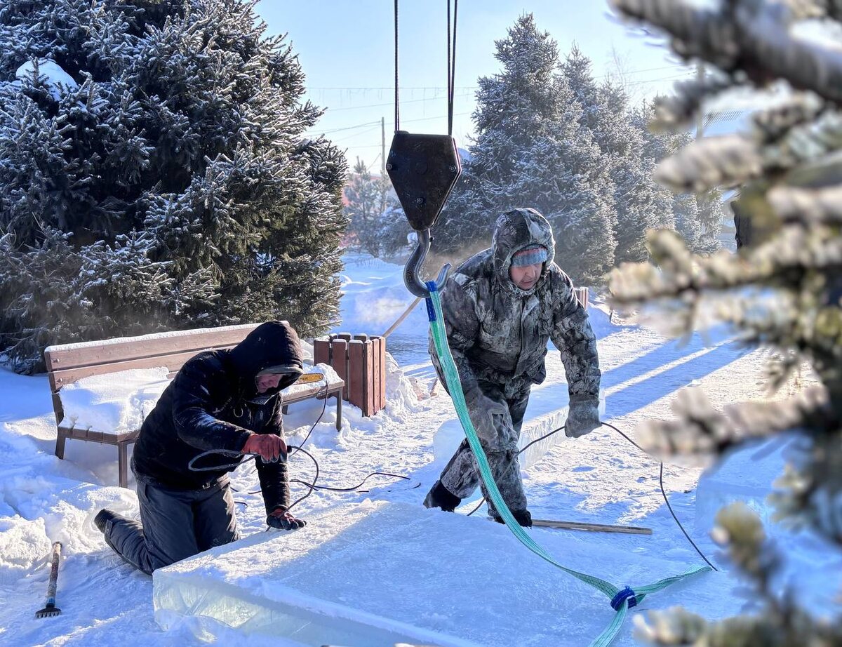 ❄️ В Нижнем Ингаше начали создавать настоящую зимнюю сказку🏔️🔨 Скульпторы-резчики из Красноярска уже установили ледяные блоки. Скоро они начнут вырезать волшебные фигуры. С нетерпением ждём первые ледяные шедевры ❄️📸 #НижнийИнгаш #ЛедянаяСказка #Зима2026 #КрасноярскиеРезчики #ЛедяныеФигуры