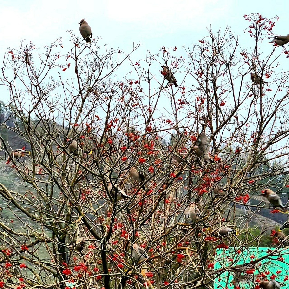 Сегодня заметила стайку ярких и весёлых свиристелей. Этих птичек в нашем Национальном парке «Башкирия» мы называем предвестниками зимы. Пернатые живут в лесу и нечасто наведываются в гости в заповедную д. Иргизлы, а вот сегодня прилетели: видимо, проголодались. Увидев стрекочущую стайку, я тут же схватилась за телефон. Они тихонько посвистывали, будто играли на свирелях: «Свири- свири-свир». Поэтому и назвали их свиристелями. Птички любят спелые ягоды рябины и калины. Вот и в этот раз стайка облепила калинку и устроила весёлое пиршество. Свиристели так жадно клевали, торопились, словно соревновались, кто съест больше. Я наблюдала за ними издалека и думала: «Какие же они забавные и пугливые». Завидев меня, стая, возмущённо свиристя, поднялась в небо. Начиная с марта, свиристели отправляются на север, где в приполярной тайге выводят птенцов. Летом питаются насекомыми, личинками, различными ягодами. А в октябре прилетают в наши иргизлинские края и остаются у нас зимовать. Они большие обж