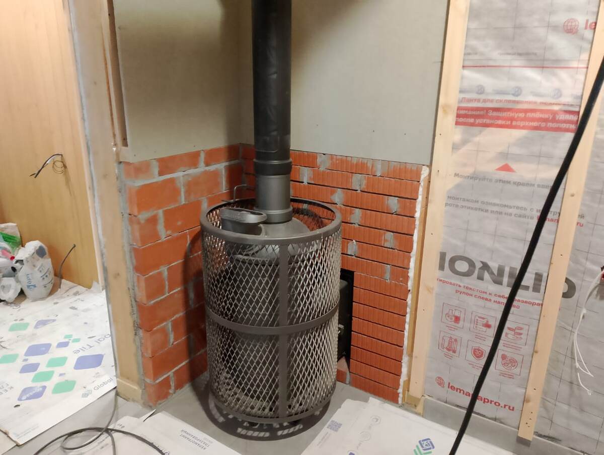 Портал - это зона которая разделяет комнату отдыха и парную, мы его называем фронтальный экран. Из каких материалов выполнить этот портал, каждый сам решает, главное чтобы он был выполнен из негорючих материалов. Мы, используем только кирпич, так ничего надежнее и долговечного нет, именно для этой зоны, на 25см выше печи (согласно гост) На данном объекте, применили печной красный кирпич (производства Киров) с одной стороны он идет облицовочный. Так как у нас это черновая кладка, то можно использовать практически любой кирпич. Внутри парной, как и написано ранее, кирпичная кладка на 25см выше печи, затем смонтирована огнеупорная плита (минерит) Это готовое основание под плитку. Затем при помощи жаростойкой мастики приклеиваем керамогранит. Только мастику необходимо использовать именно жаростойкую, есть хороший производитель "терракот" Смотрится красиво, функционально, оригинально. А как Вам ? поделитесь своим мнением в комментариях. Мы, занимаемся отделкой бань и монтажом печей. Вся ак