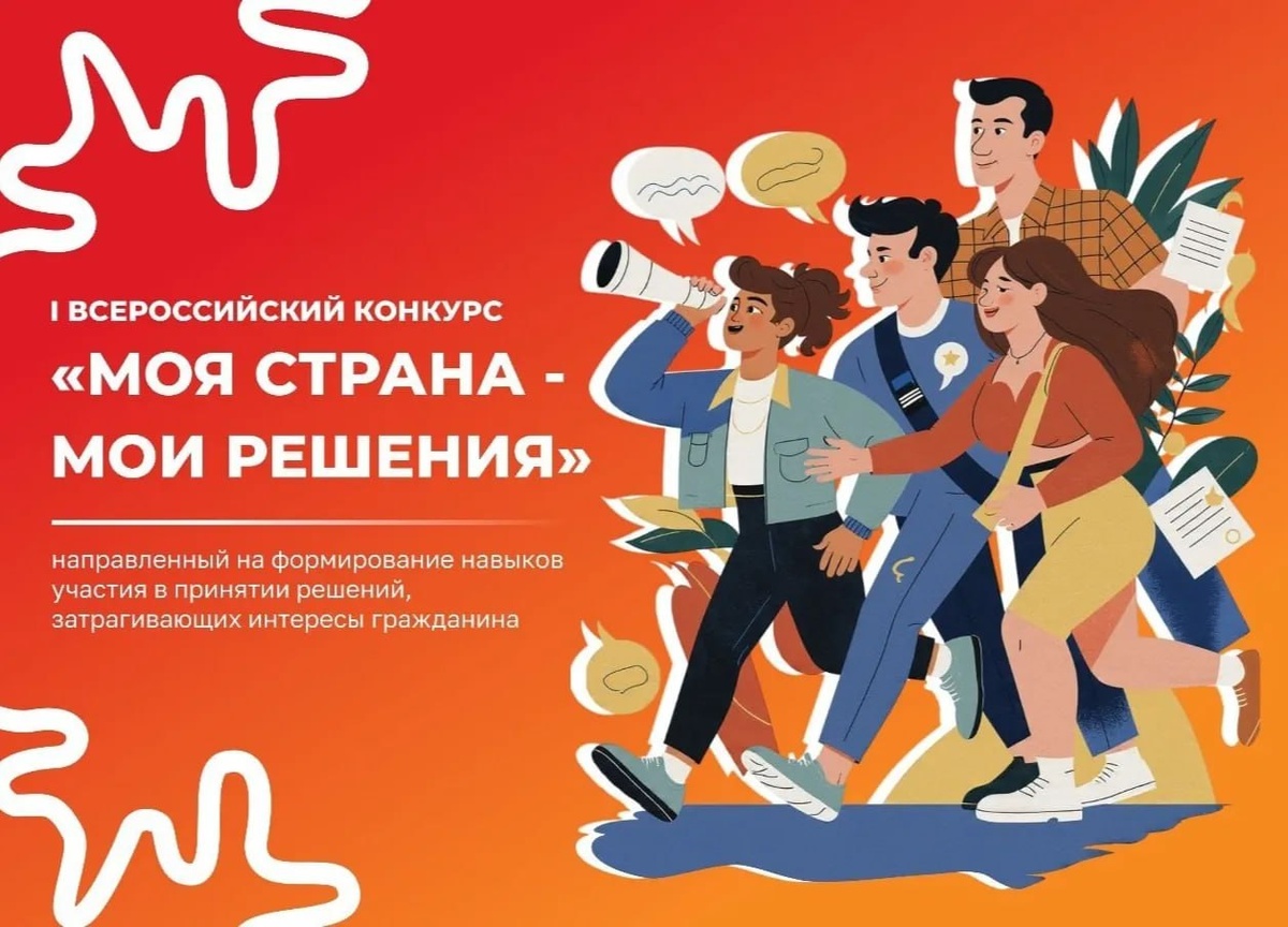 Стартовал всероссийский конкурс «Моя страна – мои решения»! 🚀 В рамках национальных проектов «Семья» и «Молодёжь и дети» начался приём заявок на всероссийский конкурс «Моя страна – мои решения» 😊. Его цель — выявить и представить общественности яркие примеры гражданских инициатив и социальных практик. Участники могут подать свои проекты в восьми интересных номинациях, среди которых: 🌟 «Моё решение – работать над собой»; 🧠 «Я учусь принимать решения»; 👫 «Решения, принятые в кругу друзей»; 🤝 «Я решил стать волонтером»; 🇷🇺 «Я выбираю быть патриотом»; 💡 «Моё решение – инновация! Наука в действии!»; ❤️ «Моё социальное решение»; 👨👩👧👦 «Я выбираю стать многодетной матерью/отцом». Конкурс призван повысить интерес к социальным инициативам и развить навыки проектной работы. 📅 Ключевые даты: Заочный этап: приём заявок продлится с 1 декабря 2025 года по 30 апреля 2026 года. Очный этап (финал): состоится в Москве с 10 по 12 июня 2026 года, в дни празднования Дня России 🎉. 📝 Ка