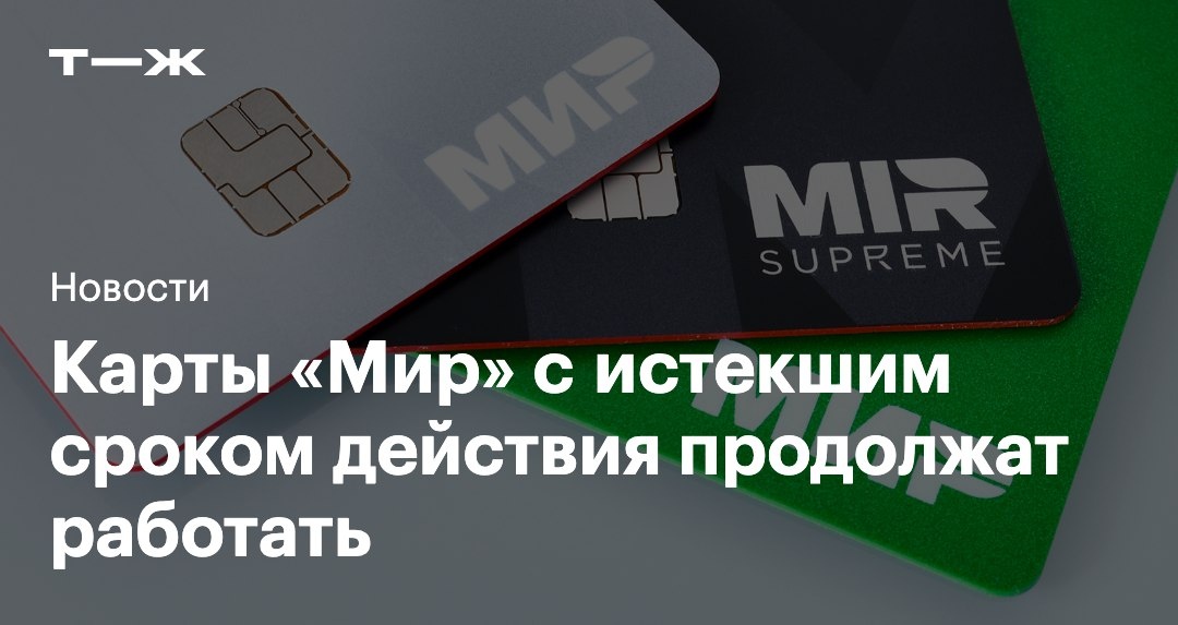 😮 У вашей банковской карты истек срок действия? Ничего страшного, она продолжит работать почти везде. В статье объясняем, что оплатить все-таки не получится: https://t-j.ru/tg/mir-budet/