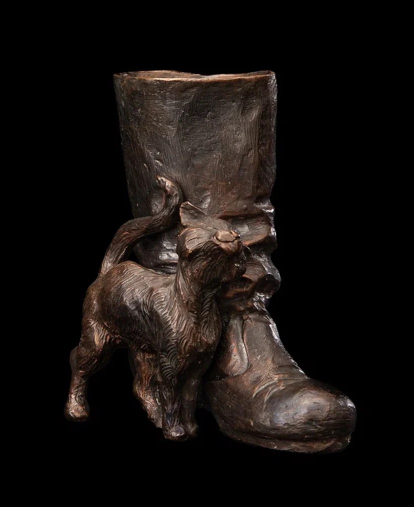🐾 Карандашница "Кот с сапогом" Бронза. Авторская работа. Ручная лепка. Настроение — «мур- мурр». Такой он — хранитель порядка на столе и уюта в душе. Карандашница, которая не просто держит карандаши, а держит настроение. Эта вещичка с характером: хранит карандаши, вдохновение и немного хвостатого пофигизма. Для художников, писателей и просто любителей котов, которые знают толк в уюте. #кот #бронза #купить