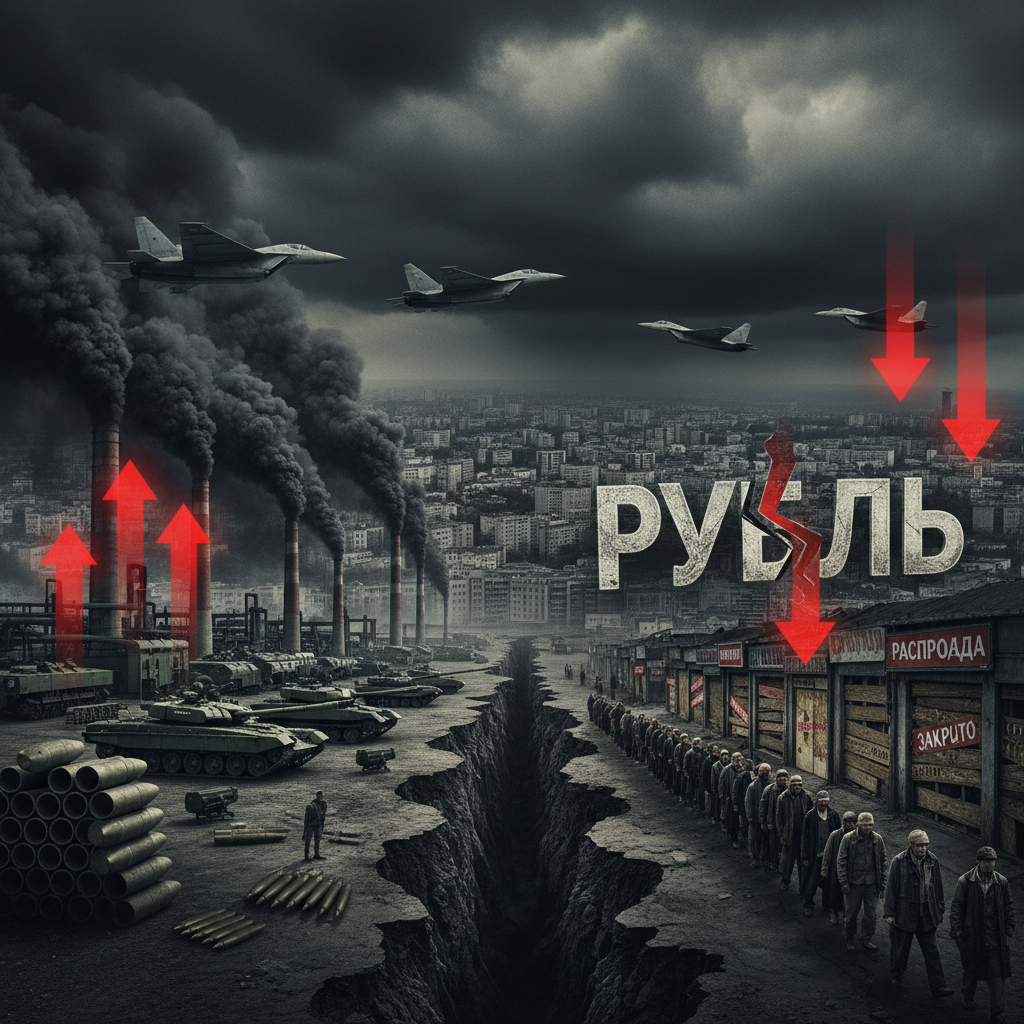 Российская экономика находится в критической точке переломного момента. После двух лет беспрецедентного роста, подпитываемого военными расходами на войну в Украине, страна столкнулась с суровой реальностью стагфляции — сочетанием низкого роста и высокой инфляции. В условиях, когда армия и оборонная промышленность поглощают львиную долю государственных ресурсов, гражданская экономика переживает настоящий коллапс. Официальная статистика скрывает истинные масштабы катастрофы, однако данные, просочившиеся в прессу и исследовательские центры, рисуют мрачную картину, которую правительство всеми силами пытается скрыть от общественности.