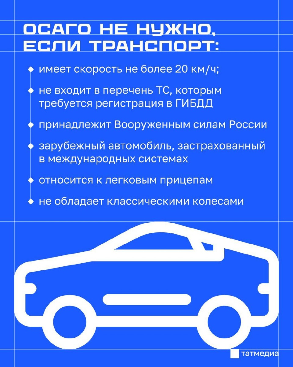 В ответ на пост 🚗📁 ОСАГО: в каких случаях можно его не оформлять? Полис ОСАГО считается одним из обязательных документов для автовладельцев. Но в отдельных ситуациях жители РТ могут его не оформлять. Подробнее об этом – в посте. @tatmediaofficial | Все каналы Татмедиа ™️ 1-й новостной MAX-канал Татарстана - подпишитесь.