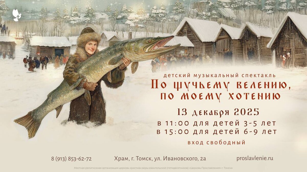 🎄 ДЕТСКОЕ РОЖДЕСТВО 🎄 Дорогие друзья, приглашаем все семьи на праздник, посвящённый светлому празднику Рождества Христова! В программе: ✨ Музыкальный спектакль «По щучьему велению…» — но по-новому! В жизни Емели случится чудо — такое, что сердце его станет, как солнце - теплое и большое! 🥁 Игровая программа, где радость найдёт место и у малышей, и у бабушек, и у пап с мамами — вместе, как надо. 🧸 И… на дискотеку придет ОГРОМНЫЙ МИШКА! Да-да. Тот самый. С объятиями, что не хочется отпускать! Приходите! Будем рады! Радость в сердце - вам награда! 🗒 13 декабря 📍 ул. Ивановского, 2а ⏰ 11:00 — для детей 3–5 лет ⏰ 15:00 — для детей 6–9 лет