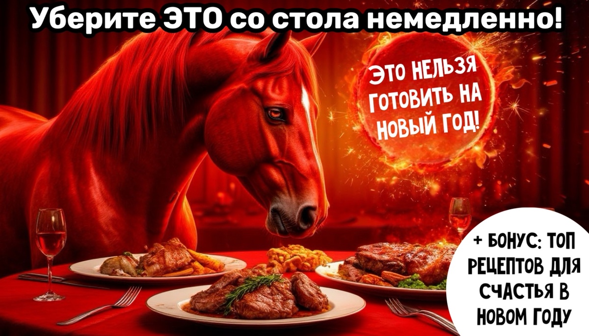 Почему нельзя: Поставить на стол мясо тотема года — это прямой вызов и неуважение. Это равносильно тому, чтобы собственноручно перечеркнуть свое здоровье и благополучие. Лошадь такого не простит.