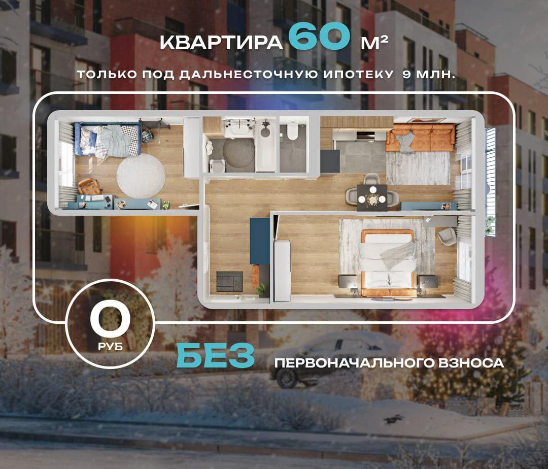 🔝 КВАРТИРА 60 М2 БЕЗ ПЕРВОНАЧАЛЬНОГО ВЗНОСА До конца года можно успеть купить квартиру без ПВ 😁 (только Дальневосточная ипотека) 9 млн. Также есть вариант покупки компактной квартиры-студии 30 м2 под ДВ ипотеку 6 млн. Успевайте ‼️ Накопить на первоначальный взнос при таком росте цен - задача не простая. Не каждая квартира подойдет под эту программу. 🏢 Но у нас СВОЁ ЖИЛЬЁ ДОСТУПНО КАЖДОМУ! 👉 Нажмите на КОНСУЛЬТАЦИЯ и наши специалисты одобрят ипотеку и подберут специально для Вас квартиру, работаем без комиссии и скрытых платежей 🔸 Звоните +74232800207 🔸 Отдел продаж: ул. Жигура, 26а, офис 5-9 ❤️ Ваш сервис недвижимости №1 Башни.про