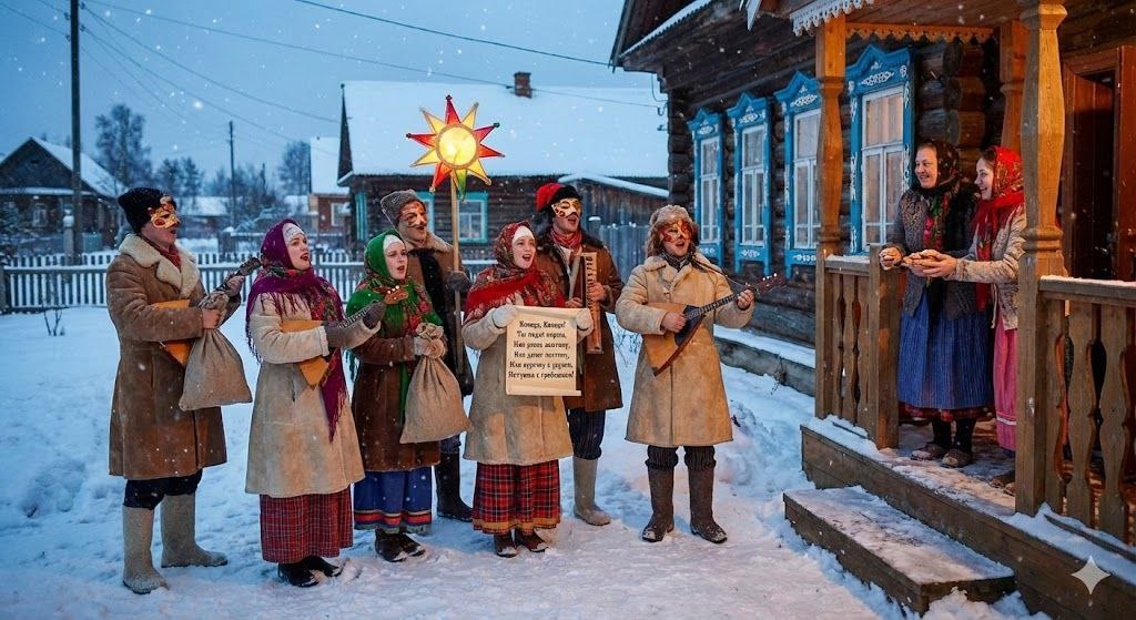 Заголовок: Колядки: магия обрядового слова 🎵📜 Коляда — самый шумный и весёлый праздник зимы! И главный его звук — это колядки: обрядовые песни, которые обходили дворы, славили хозяев и желали им богатства, здоровья и урожая. Петь колядки — это была не просто забава, а магический акт: словом, ритмом, намерением заряжали пространство на весь будущий год. Давайте и мы прикоснёмся к этой традиции. Вот простая и красивая колядка: «Коляда, Коляда! Ты подай пирога, Или хлеба ломтину, Или денег полтину, Или курочку с хохлом, Петушка с гребешком!» #Колядки #НародныеПесни #Обряд #МагияСлова