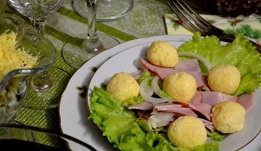 Всё перемешиваем. Получается пластичная масса. Мокрыми руками лепим маленькие шарики из сырной массы. приготовление: Смешиваем маринованный лук, листья салата и копчёную кур