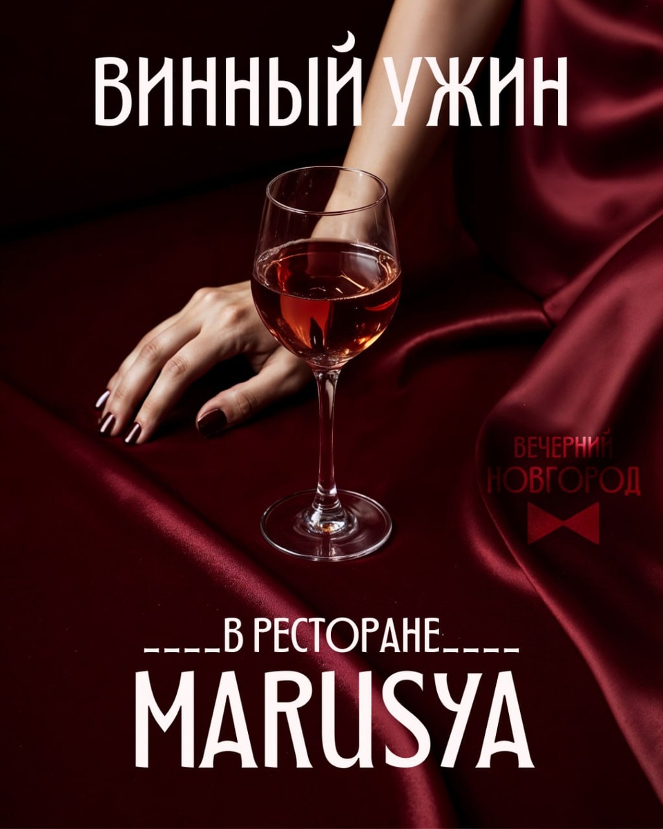 🍷 Атмосферный винный ужин «Игристые» в ресторане MARUSYA Гостей ждет вечер изысканной гастрономии и праздничного настроения. В программе ужина: — Меню из четырех авторских блюд: террин из индейки, салат с гусиной грудкой, тортеллини с тыквой и пряный кекс. — Дегустация игристых вин из Испании, Италии и России, подобранных под каждое блюдо. *️⃣ 12 декабря, 20:00 *️⃣ Стоимость участия — 3700₽/персона. *️⃣ Бронь: 788-887 *️⃣ Предтеченская, 24
