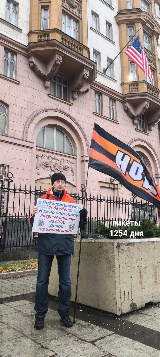 Одиночные пикеты у посольства США. 1254 дня Москва, 11 декабря 2025 #ПосольствоСША