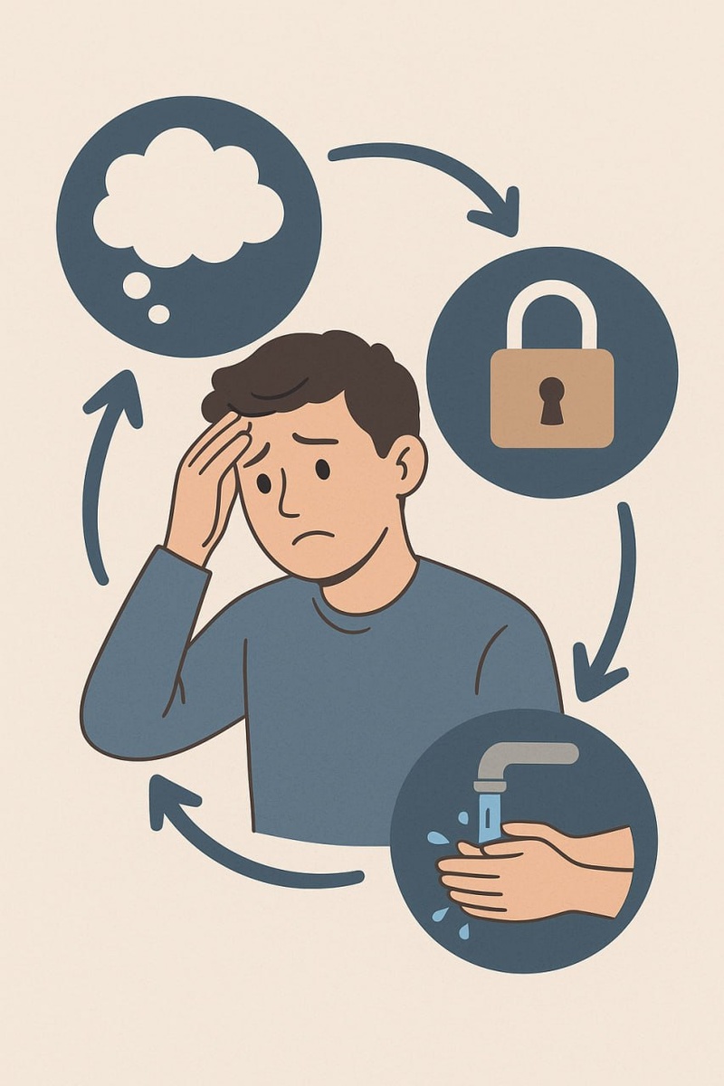 Навязчивости — своеобразный способ нашей психики предупредить угрозу, даже если шанс ее возникновения минимален. Почему они возникают? Во время эмоциональной или когнитивной перегрузки мозг стремится найти быстрый и надёжный способ уменьшить тревогу. Иногда такой способ оказывается случайным — например, человек помыл руки и почувствовал облегчение. Мозг фиксирует это как то, что спасает от тревоги и повторяет его снова. У людей с повышенной тревожностью или определёнными особенностями мышления (гиперответственность, перфекционизм) этот механизм начинает работать иначе — облегчение становится зависимым от ритуалов, а сами ритуалы постепенно усложняются. Это приводит к формированию действительно дестабилизирующих адаптацию ритуалов: перед уходом на работу необходимо посчитать вслух до 100, поставить все вещи ровно, после чего открыть и закрыть квартиру пять раз. Только после этой последовательности действий, возможно, ничего не произойдет сегодня. Примеры ритуалов: • многократное мы