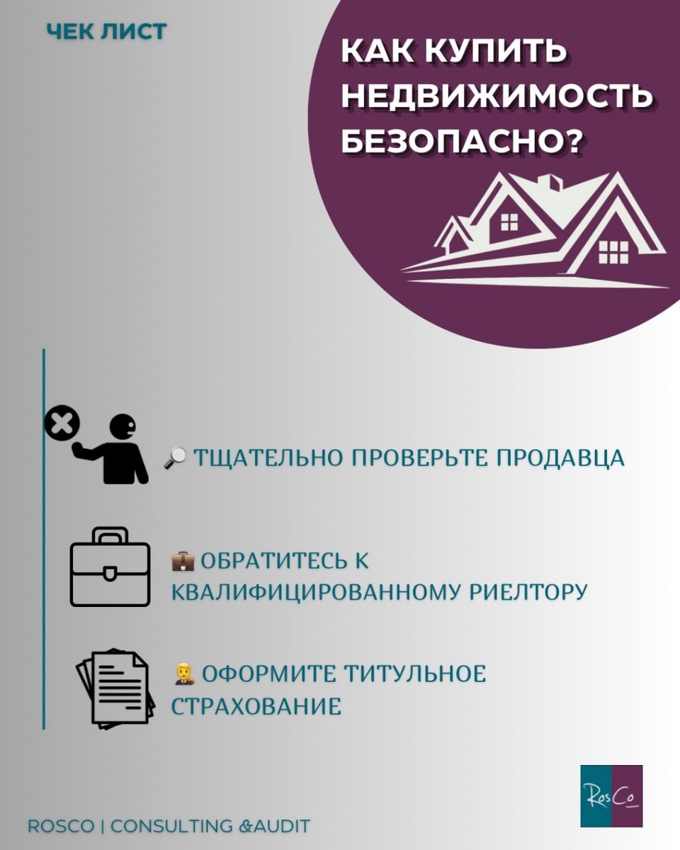 🏠 Как купить недвижимость безопасно? #чеклист За 2025 год в России на 15-20% выросло количество судебных споров, где бывшие владельцы пытаются через суд вернуть уже проданную недвижимость. В большинстве случаев проигрывают добросовестные покупатели, которые честно заплатили за жилье. 🔎 Тщательно проверьте продавца 🔸проведите личную встречу и беседу с продавцом; 🔸запросите актуальные справки из психоневрологического и наркологического диспансеров при сделках с пожилыми людьми; 🔸требуйте личного присутствия собственника, а не представителя на ключевых этапах сделки. 💼 Обратитесь к квалифицированному риелтору 🔸организует и зафиксирует процесс проверки продавца; 🔸проверит юридическую историю квартиры и все цепочки предыдущих сделок; 🔸поможет запросить и проанализировать выписки из ЕГРН, справки о регистрации по месту жительства, долгах по ЖКХ и т. д. 👨⚖️ Оформите титульное страхование Если суд вернет квартиру прежнему владельцу, страховщик компенсирует вам ее полную стоимост
