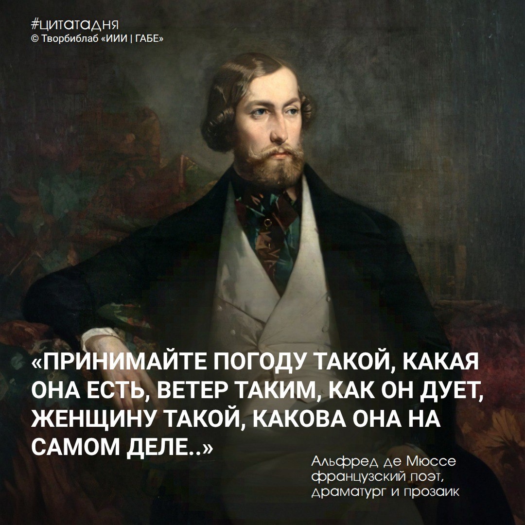 📖 Литературный юбилей: 215 лет со дня рождения Альфреда де Мюссе Альфред де Мюссе (1810–1857) — выдающийся французский поэт, драматург и прозаик, один из главных представителей романтизма XIX века, чьё творчество высоко ценил А.С. Пушкин. Любовь, страсть, одиночество и внутренний мир человека — главные темы в произведениях Мюссе. В ранних работах он запечатлел бурные человеческие эмоции, а в поздних, после неудачного романа, его переживания стали глубже и трагичнее. Одной из значимых страниц его жизни и творчества стало знакомство с Жорж Санд. Их связь началась как яркая искра, но вскоре превратилась в пламя борьбы, ревности и страданий. Всю жизнь Мюссе вспоминал об этом мучительном романе. В своём знаменитом произведении «Исповедь сына века» (1836) Мюссе под именем Бригитты Шпильман изобразил бывшую возлюбленную, выразив в эпилоге надежду на то, что когда-нибудь они смогут простить друг друга. Ты вспомни обо мне, когда по воле рока, Нам будет суждено расстаться навсегда; Когда пе