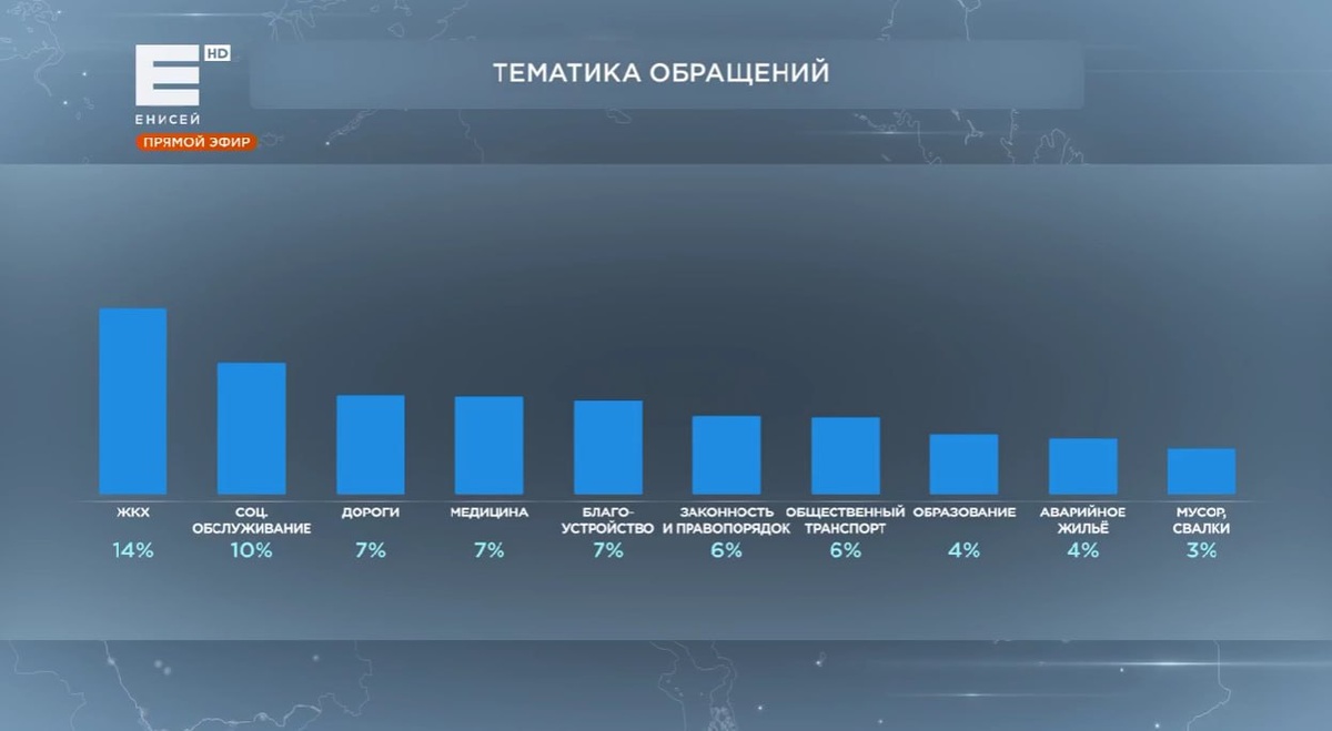 Топ тем возглавили проблемы ЖКХ, соцобслуживания и дорог.