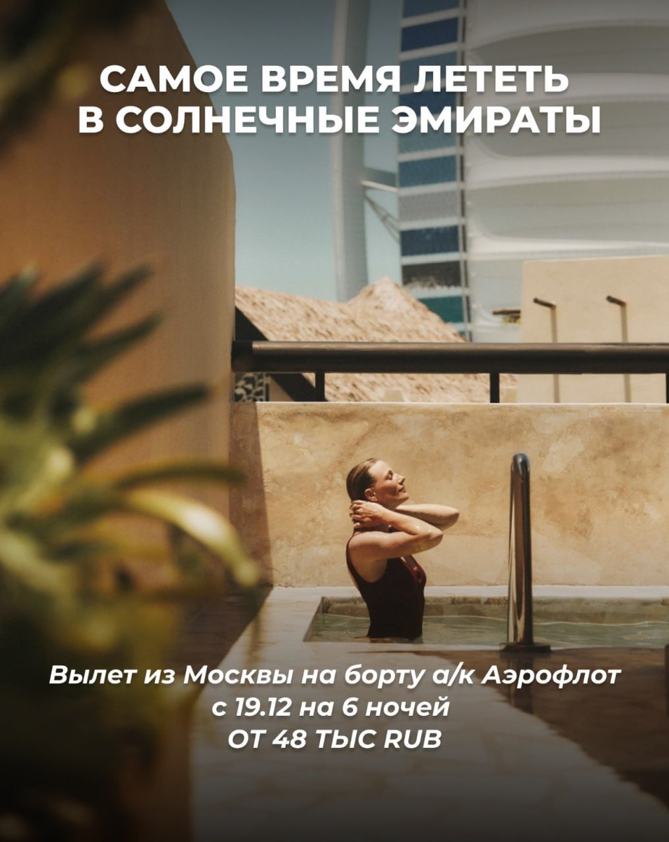 ЭМИРАТЫ В ДЕКАБРЕ — ЦЕНЫ ✈️☀️🔥 Если вы мечтаете о солнце, тепле и ярких эмоциях перед Новым годом — декабрь в Дубае идеален. Мягкая погода, праздничная атмосфера, море в комфортной температуре и самое главное — шикарные цены на туры с вылетом уже с 19 декабря! Почему сейчас лучший момент для брони? ✔️ Декабрь — пик сезона, но пока есть свободные места и выгодные тарифы ✔️ Аэрофлот — комфортный прямой перелёт, удобные стыковки ✔️ Выбор отелей на любой бюджет: от стильных городских до роскошных курортов на Пальме ✔️ Дубай в декабре — это идеальная погода: +26…+28°C и никаких экстремальных температур Вы получаете праздничный отдых премиум-уровня по цене обычного тура. ✈️ ВЫЛЕТ ИЗ МОСКВЫ | АЭРОФЛОТ 📅 19.12 | 6 ночей Стоимость указана за 1/2 DBL, питание BB 🌴 АКТУАЛЬНЫЕ ОТЕЛИ 🏨 Rove At The Park 💰— от 48 000 ₽ Стильный, доступный, рядом с тематическими парками Dubai Parks & Resorts 🏨 Movenpick Jumeirah Village Triangle 💰— от 55 000 ₽ Новый отель, современный дизайн, удобное ра