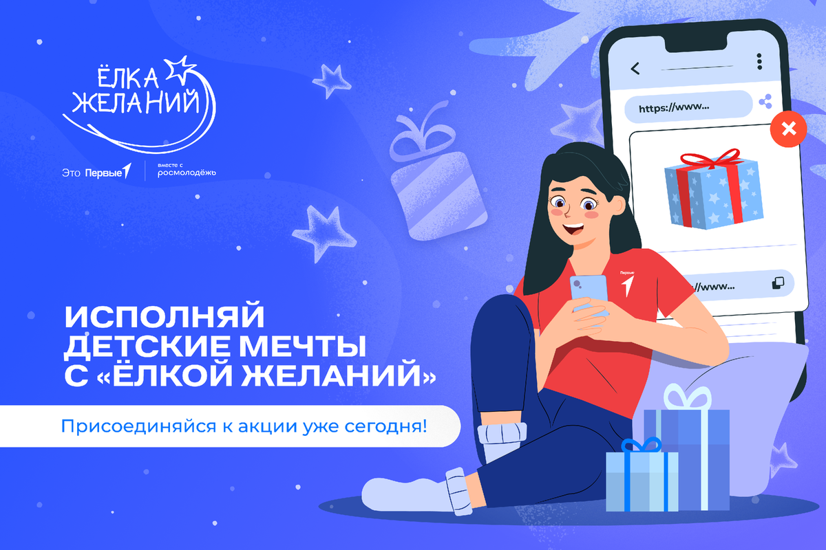 Движение Первых и Росмолодёжь продолжают добрую традицию, в которой по примеру Президента России участвуют более 120 тысяч человек по всей стране. Дети участников СВО, дети-сироты, ребята с ограниченными возможностями здоровья, с инвалидностью под Новый год продолжают мечтать и верят в чудо как все остальные, даже больше. Поддержать их можно в офлайн-формате, снимая шарики с ёлок на площадках крупных мероприятий или в торговых центрах, а также зарегистрировавшись на сайте акции. Там ты сможешь выбрать желания и связаться с семьями мечтателей. А если возникнут затруднения, тебе с радостью помогут волонтёры. С 2018 года неравнодушные жители нашей страны реализовали свыше 320 тысяч желаний — и это не предел! В этом году у «Ёлки желаний» есть 3 дополнительных формата: благотворительные акции «Праздник на стол», «Хвостатый Новый год» и «Внуки с подарками». В них участники могут пожертвовать средства на продукты для малоимущих семей, на обустройство приютов для животных и подарки одиноким