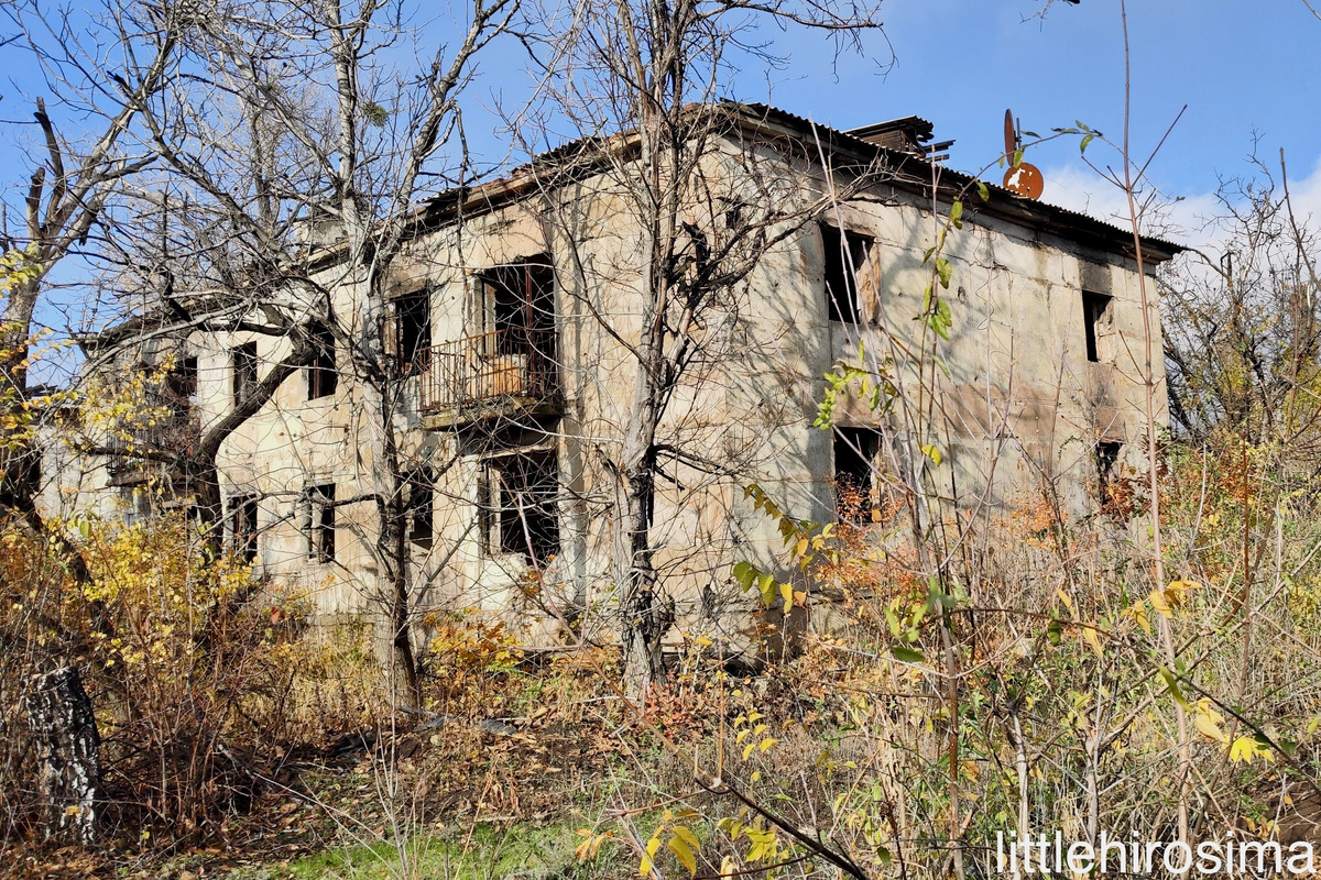 Покрошенный, израненный и еле стоящий на "ногах". Нет ни одного здания, которое бы не пострадало от обстрелов в той или иной мере.